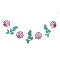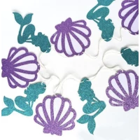 Гірлянда паперова гліттер русалка черепашки 3 метри (фіолетовий, бірюзовий) -