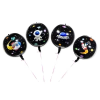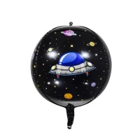 Кулька має круглу форму з малюнком космічних героїв і предметів