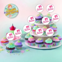 Круглі топери “Барбі. Білий + лого“ (10 шт./пач.) для кексів, мафінів, капкейків
