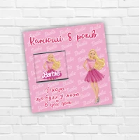 Листівка з міні шоколадкою “Барбі“ з іменем. Текст на вибір