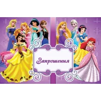 Дитячі запрошення тематичні (10шт/уп картон поліграфічний)- Принцеси Дісней (10шт/уп), Українською