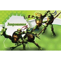 Дитячі запрошення тематичні (10шт/уп картон поліграфічний)- Черепашки Ніндзя - Український