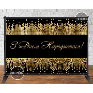 Интерьерный новогодний баннер / фотофон “Золотая новогодняя комната“ 2х2м (фотозона) (без каркаса)