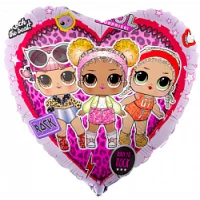 Шар фольгированный сердце “Куклы ЛОЛ“ / LOL / L.O.L фиолетовый Flexmetal для гелия 45 см