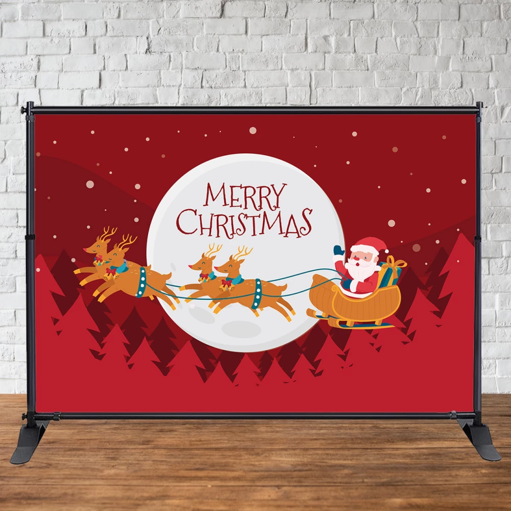 Баннер Новогодний 3х2м (Красный фон Дед Мороз и Олени) - Фотозона (виниловый)