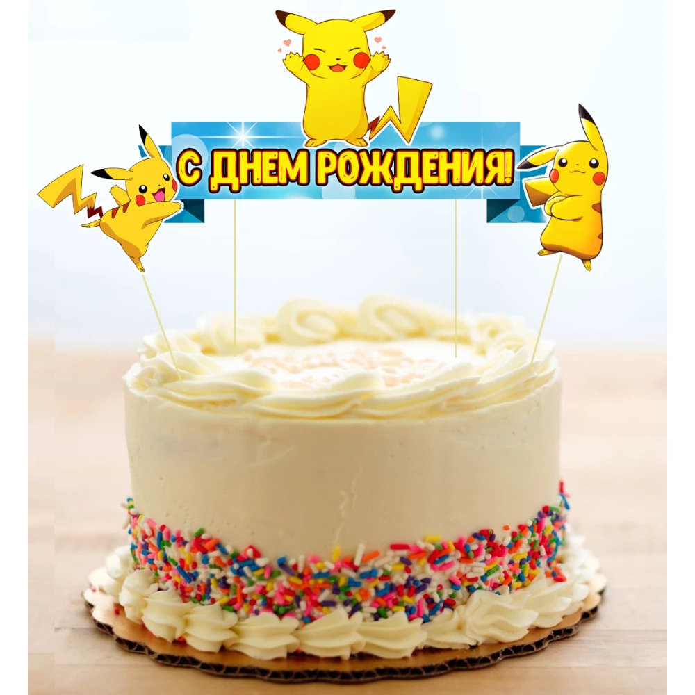 Набор Топперов “Покемон Пикачу“топер в торт с флажком (КАРТОН)(Русский)
