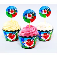 Набор для капкейков: топперы и накладки на корзинки (6шт/уп)(Картон)- Герои в масках, Украшение для стола,