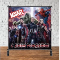 Продажа Баннера 2х2м, Мстители / Супергерои / AVENGERS / Марвел - Фотозона (баннер) на День рождения - красно-синие цвета (темный)