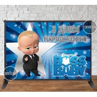 Баннер для праздничной фотозоны на день рождения. Босс Молокосос ( Синий, звезда и полоски )