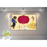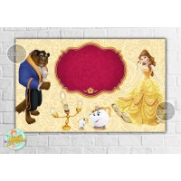 Плакат тематический для Кенди-бара 120х75 см на детский День рождения / праздник. “Красавица и чудовище, свеча, чашка, чайник“ герои из мультфильма (без надписи) Аксессуары для детского праздника.