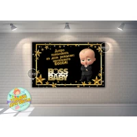 Плакат тематический для Кенди-бара 120х75 см на детский День рождения / праздник. “Босс Молокосос / BOSS BABY“ черно-золотой. Аксессуары для детского праздника.