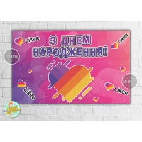 Плакат “Лайки / Лайк / Like“ Розовый 120х75 см на детский День рождения - Украинский