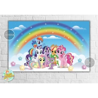 Плакат “Маленькие пони“ радуга 120х75 см на детский День рождения -