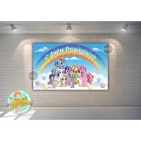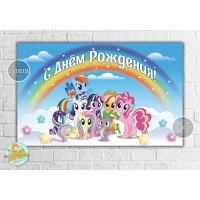 Плакат “Маленькие пони“ радуга 120х75 см на детский День рождения - Русский