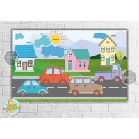Плакат “Машинки и домик“ 120х75 см на детский День рождения -