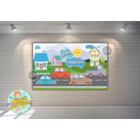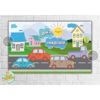 Плакат “Машинки и домик“ 120х75 см на детский День рождения - Русский
