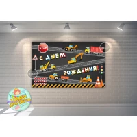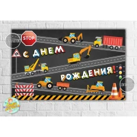 Плакат “Строительные машинки, дорога“ 120х75 см на детский День рождения - Русский