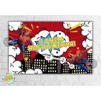 Плакат “Спайдермен / Человек-Паук“ (красно-белый - комикс-стиль) 120х75 см для Кенди - бара Тематический -