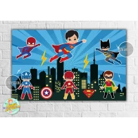 Плакат “Супергерои / дети“ 120х75 см, на детский День рождения -