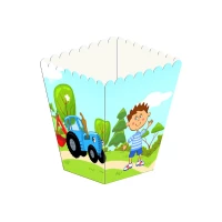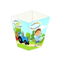 Коробочка для попкорна “Синий трактор“ Поштучно 10см высота (малотиражные)