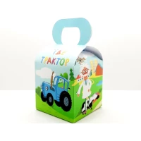 Коробочка “Синий трактор“ для подарков и угощений 10х10х10 малотиражные -