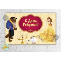 Плакат тематический для Кенди-бара 120х75 см на детский День рождения / праздник. “Красавица и чудовище, свеча, чашка, чайник“ герои из мультфильма (без надписи) Аксессуары для детского праздника.
