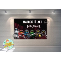 Плакат “Ниндзяго (Герои)“ 120х75 см на детский День рождения - Индивидуальная надпись
