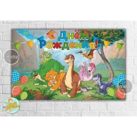 Плакат в стиле “Динозаврики (Земля до начала времен)“ 120х75 см на детский День рождения - Русский