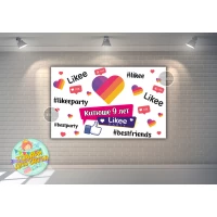 Плакат тематический для Кенди-бара 120х75 см. на детский День рождения / праздник. “Likee / Лайки / Лайк“ Белый. Аксессуары для детского праздника.