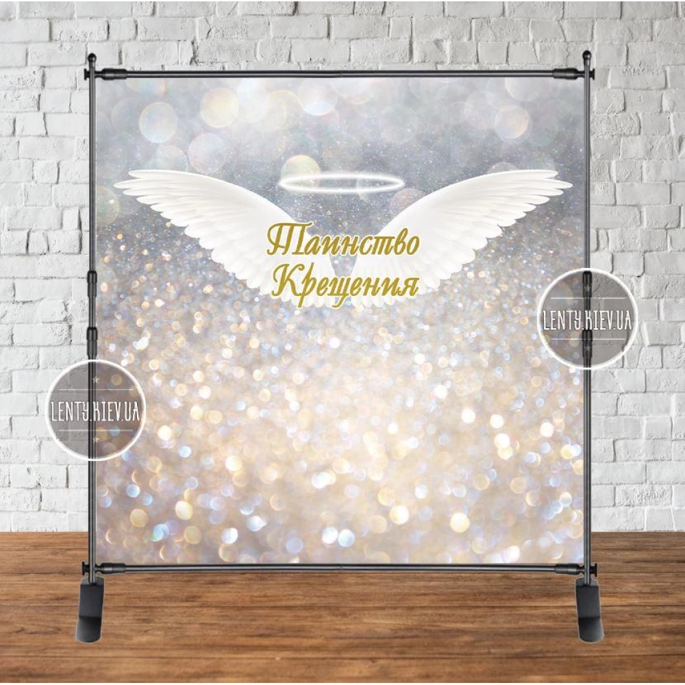 Продажа Баннера “Таинство крещения, крылья, блестки“ - Фотозона (виниловый баннер) на день рождения 2х2м Русский