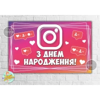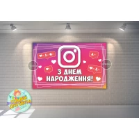 Плакат “Инстаграм / Instagram“ 120х75 см на детский День рождения (розовый)- Украинский