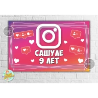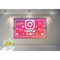 Плакат “Инстаграм / Instagram“ 120х75 см на детский День рождения (розовый)- Индивидуальная надпись