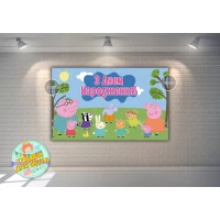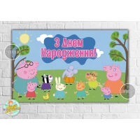Плакат “Свинка Пеппа на лужайке“ 120х75 см на детский День рождения- Украинский