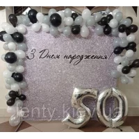 Баннер для праздничной фотозоны на День рождения. “Серебряный глиттер“. Аксессуары для праздника.