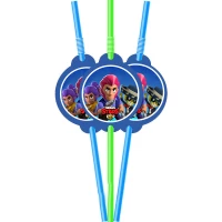 Коктейльные трубочки с гофрой Бравл Старс синий (10 шт.)