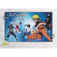 Плакат “Наруто / Аниме“ голубой стиль 120х75 см на детский День рождения - Индивидуальная надпись