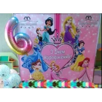 Баннер для праздничной фотозоны на День рождения.“Принцессы Дисней. Розовое сияние“. Аксессуары для праздника.