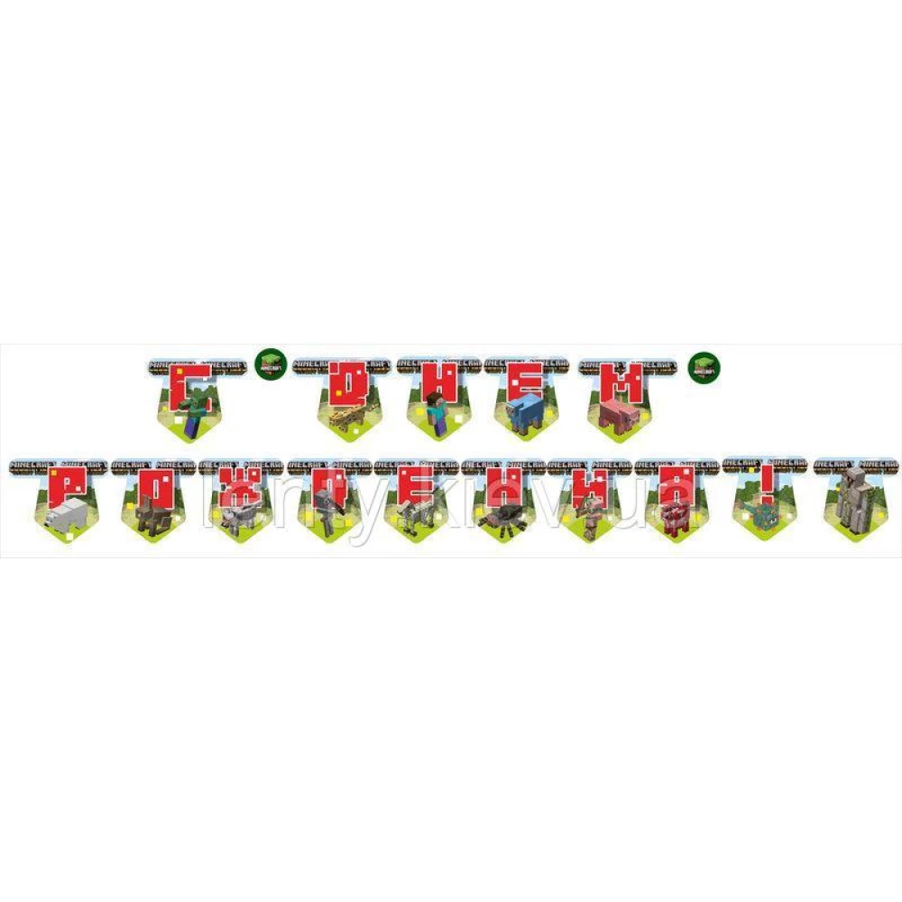 Гирлянды бумажные Майнкрафт «С Днем Рождения» (Рус.яз.)