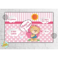 Плакат-метрика “Мишка Тедди девочка“ 120х75 см, на детский День рождения -