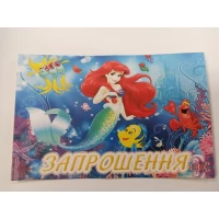 Детские пригласительные тематические (фотобумага) -малотиражные издания- Русалочка Ариель - Украинский