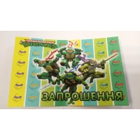Детские пригласительные тематические (фотобумага)укр.яз.-малотиражные издания- Черепашки ниндзя - Украинский