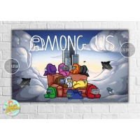 Плакат “Амонг ас / Эмонг ас“ синий стиль 120х75 см на детский День рождения -