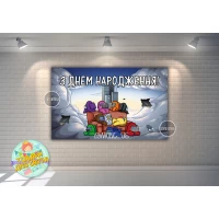 Плакат тематический для Кенди-бара 120х75 см на детский День рождения / праздник. “Амонг ас / Эмонг ас“ синий стиль. Аксессуары для детского праздника.