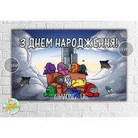 Плакат “Амонг ас / Эмонг ас“ синий стиль 120х75 см на детский День рождения - Украинский