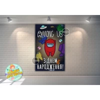 Плакат “Амонг ас“ черное космическое небо - вертикальный 120х75 см на детский День рождения - Украинский