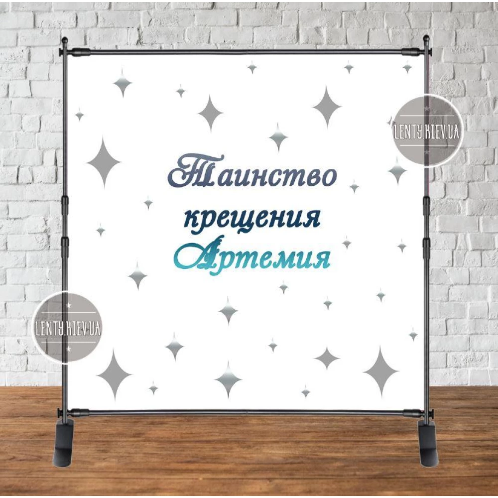 Продажа Баннера - Фотозона (виниловый баннер) на Крещение “Серебряные ромбы/звезды“ 2х2 м - Индивидуальная надпись