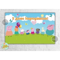 Плакат “Свинка Пеппа. День рождения“ 120х75 см на детский День рождения- Украинский
