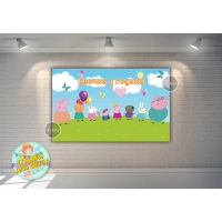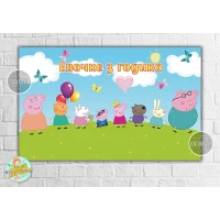 Плакат “Свинка Пеппа. День рождения“ 120х75 см на детский День рождения- Индивидуальная надпись