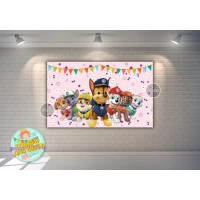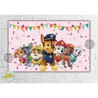 лакат 120х75 см в стиле “Щенячий патруль - Розовый. Команда на детский День рождения -