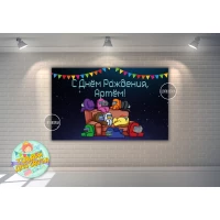 Плакат “Амонг ас / Эмонг ас“ Герои на диване 120х75 см на детский День рождения Индивидуальная надпись